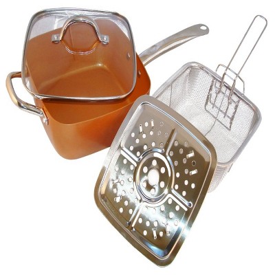 Uncategorized Copper Chef Square Pan As Seen On Tv - The pan is copper colored, coated aluminum with a steel induction plate. Pan works on every stovetop, induction included.