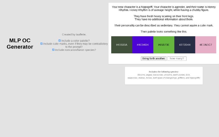 Uncategorized Dice Oc Generator - This was created by icetiger101, but is currently run by starflight897, qibli77, goosely122, and adrestia, so if you would like an oc, please either leave a message on one of their walls or comment down below! Welcome to the oc generator!
